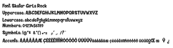 Skater Girls Rock, genç ve enerjik bir yazı tipi ailesidir. Kaykay kültürünün isyankâr ruhunu yansıtan, el yapımı ve hafif düzensiz bir yapıya sahip kalın harf formları ile dikkat çekmektedir. Okunaklılık sağlarken, farklı varyasyonlarıyla dinamik düzenlemelerde kullanılmak üzere tasarlanmıştır. Katmanlı kişilikler sunan katı, dokulu ve konturlu stiller, projelerinize hareket ve cesaret katma imkanı tanır.